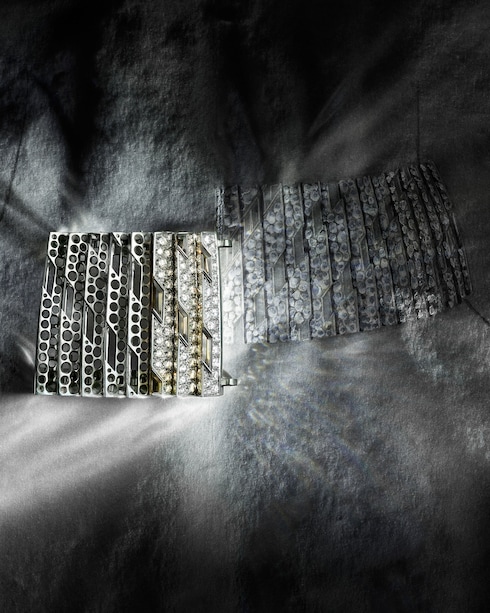 Das Kapitel Awakened Minds erinnert an Expansion und Innovation durch hypnotische Szenarien, die von der Verbundenheit der Bewegung geprägt sind - eine neue stilisierte Interpretation der Industrialisierung in einem meisterhaften Spiel der Geometrie und der Signaturen der Maison.