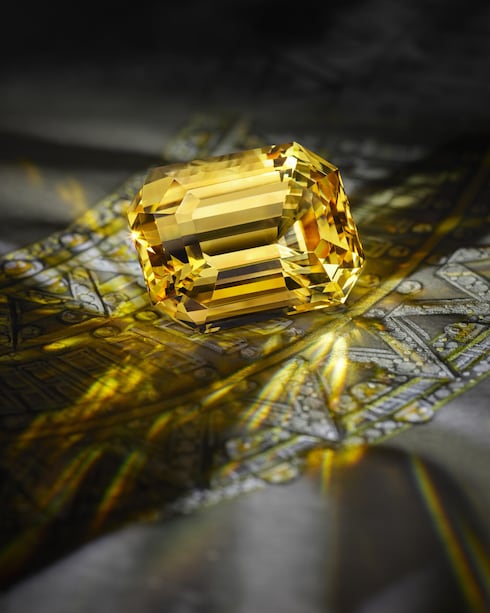 Gelbgold, Platin, gelbe Saphire und Diamanten.
