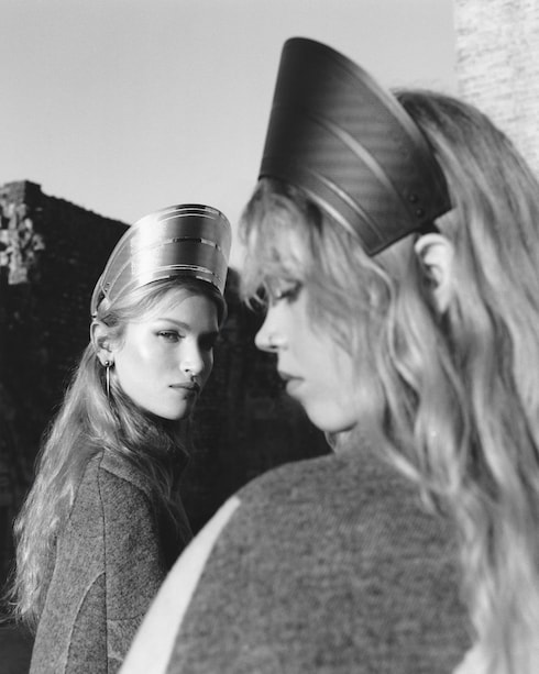 Wie eine zeitlose Erinnerung entfalten sich skulpturale Formen und metallische Akzente in Modeschmuck, Handtaschen und Accessoires – Fragmente einer wiedererweckten Vergangenheit, geprägt von femininer Stärke.