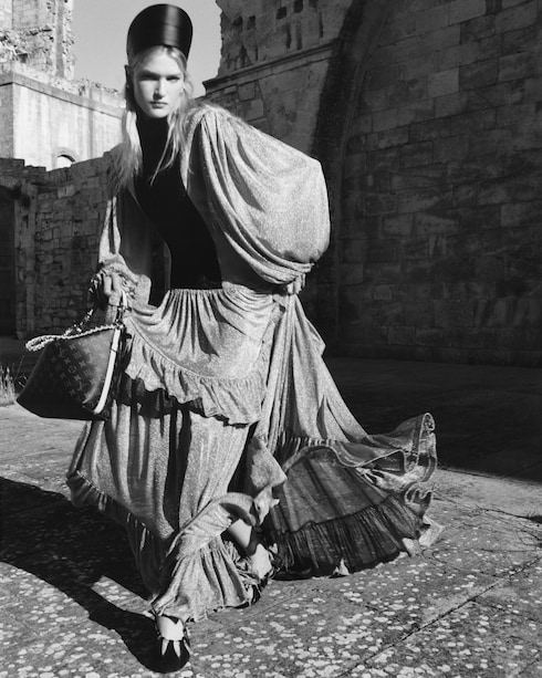 Inspiriert von der mittelalterlichen Faszination und dem Glanz des Glam Rock präsentiert Nicolas Ghesquière die Cruise 2026 Kollektion.