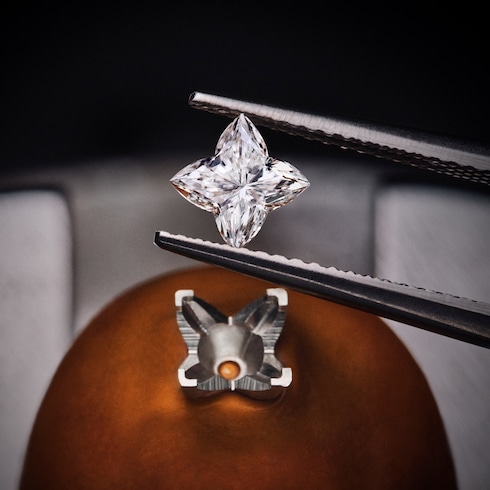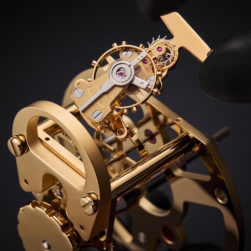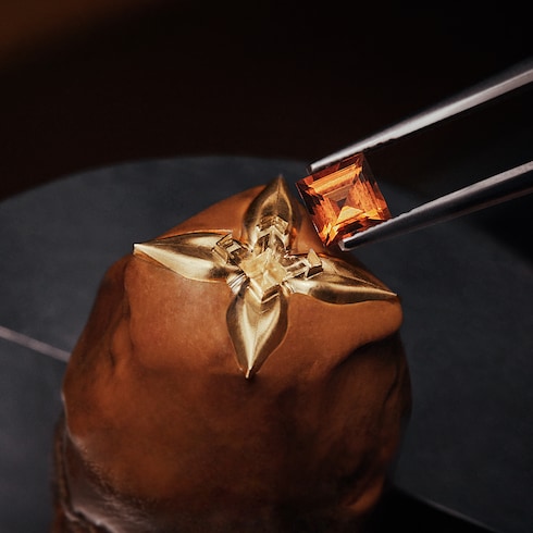 Die auf 15 Stück limitierte Version der Camionnette Louis Vuitton vereint das Savoir-faire der Haute Horlogerie, der Schmiedekunst sowie der Tradition der Kofferherstellung in einer einzigartigen Kreation. Ihre hochglanzpolierten, vergoldeten Wände sind mit einem exquisiten, handguillochierten Damier Muster verziert, das mit Diamanten akzentuiert ist. Baguette-geschliffene orangefarbene und rote Saphire sowie der LV Monogram Star Cut Diamant runden das Design ab.