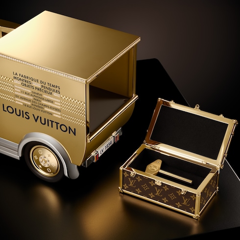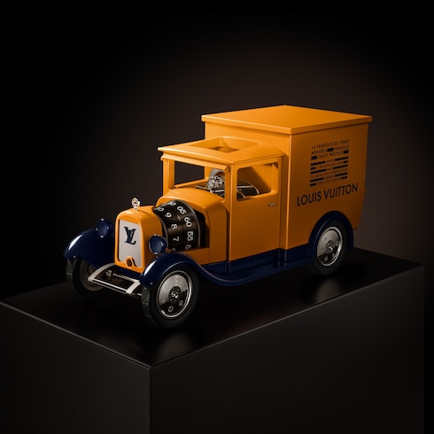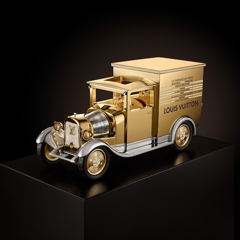 Dieses Sammlerstück in limitierter Auflage lädt zum Träumen und Reisen ein – eine poetische Neuinterpretation eines ikonischen Desgins. Die Camionnette knüpft an die Tradition der Maison an und greift Elemente der historischen Lieferwagen von Louis Vuitton auf. Der winzige Monogram Koffer im Inneren ist eine Hommage an die Tradition der Koffermanufaktur.