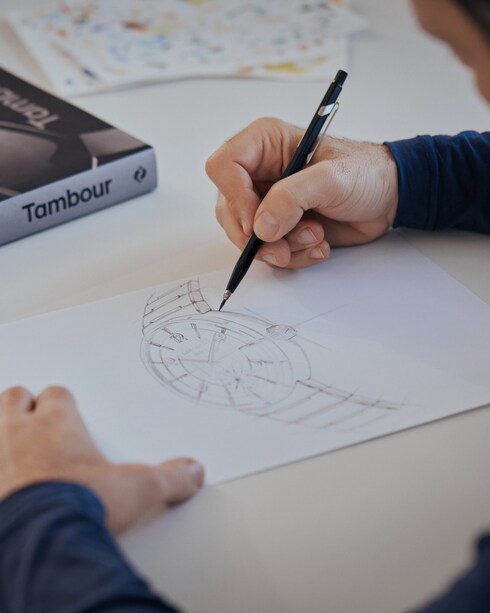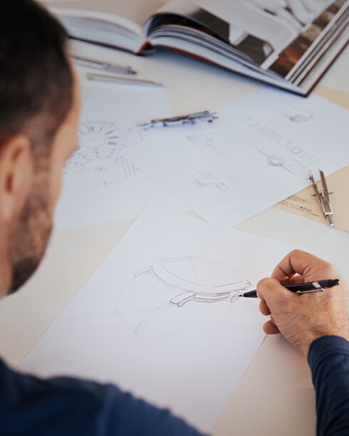 Eine Idee beginnt mit einer Bleistiftskizze, die anschließend durch eine lebendigere Darstellung in Gouache oder Aquarell zum Leben erweckt wird. Jede Kurve, jede Form und jede Nuance wird kontinuierlich verfeinert, so dass sich nach und nach die Silhouette einer neuen Uhrenkreation enthüllt. In diesem Moment nimmt die Zeit eine andere Dimension an und gibt den Weg frei für die 3D-Modellierung - der Beginn einer Reise zwischen Tradition und Modernität, künstlerischem Ausdruck und technischer Präzision, bis die finale Kreation präsentiert werden kann.