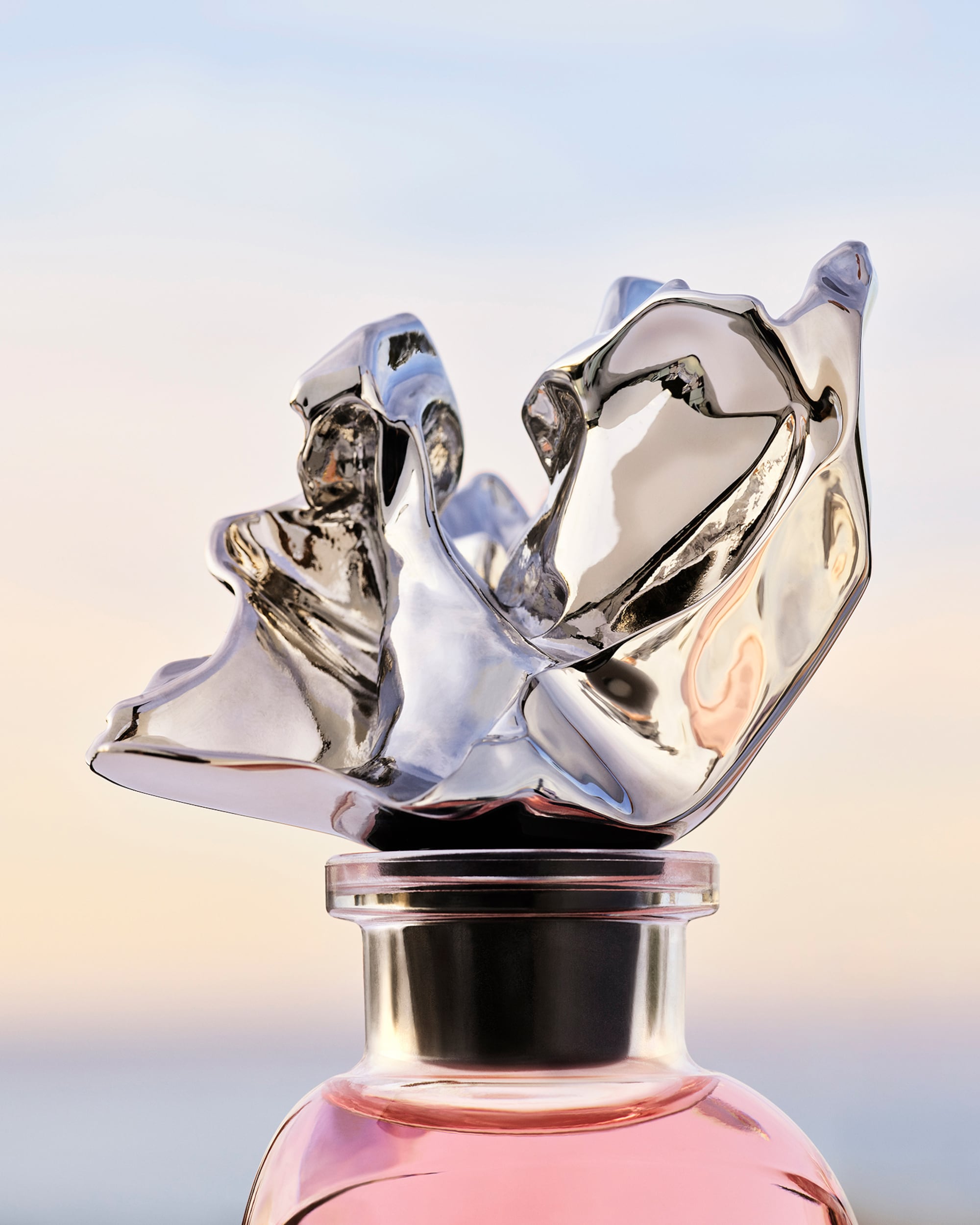 Ich wollte das Projekt von einem skulpturalen Standpunkt aus angehen. Ich wollte dem Parfum etwas anderes hinzufügen. Es handelt sich nicht um eine fertige geometrische Form, sondern um eine Bewegung. Visuelle Bewegung mit dem zusätzlichen Aspekt der Vergänglichkeit.