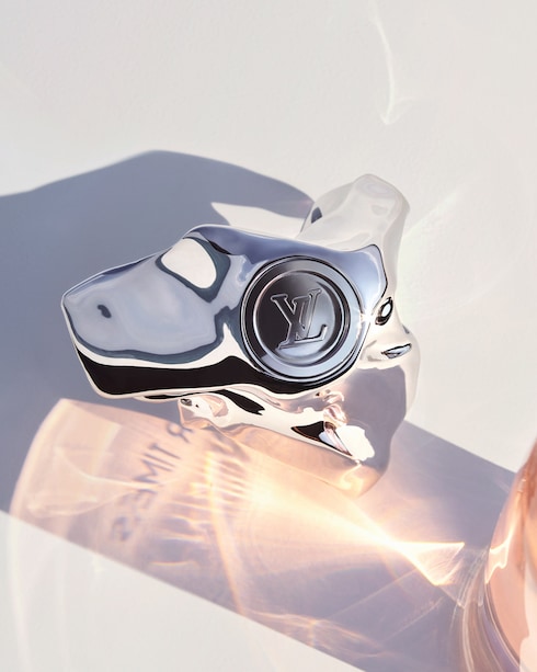 Der von Frank Gehry entworfene Flakon für die Les Extraits zelebriert das Erbe von Louis Vuitton und sein Savoir-faire als Kofferhersteller. Er betont die Fähigkeit des Architekten, Bewegung durch Statik zu erzeugen: Die sanft geschwungene Silhouette findet sich in jedem der fünf Flakons der Kollektion wieder, während die plissierten Metallelemente die Einzigartigkeit der einzelnen Flakonverschlüsse unterstreichen.