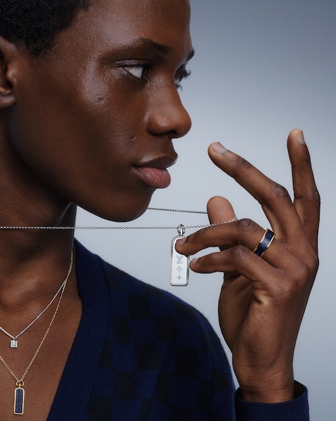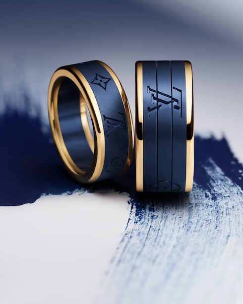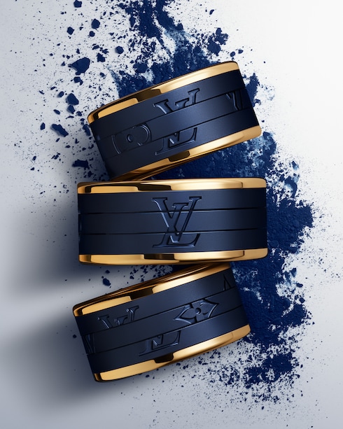 Die raffinierten Designs laden dazu ein, sich immer wieder neu zu erfinden, und zeigen mit dem interaktiven Puzzle-Ring und dem eleganten Stiftanhänger die verspielte Seite der Maison. Die von Denim inspirierten Kreationen in Titanium Les Gastons Vuitton Blau bieten eine Reihe von stilistischen Variationen.
