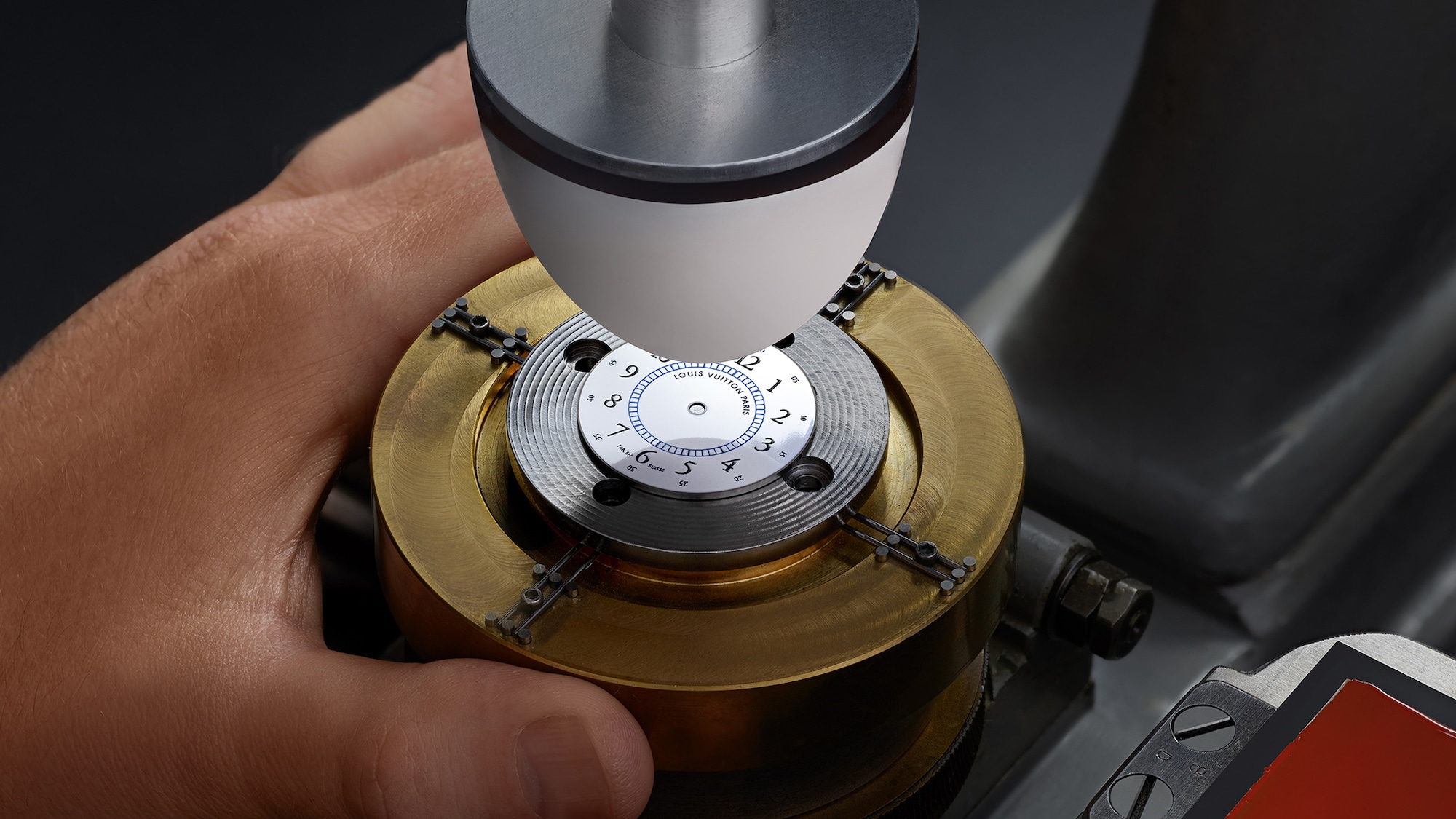 Die Louis Vuitton Monterey wird vom hauseigenen Manufakturkaliber LFTMA01.02 automatisch angetrieben und verfügt über ein Zifferblatt, dessen Fertigung fast 20 Arbeitsstunden und mehrere Brennvorgänge bei 800–900 °C erforderte – ein Nachweis für das Savoir-faire der Maison für die Uhrmacherkunst.