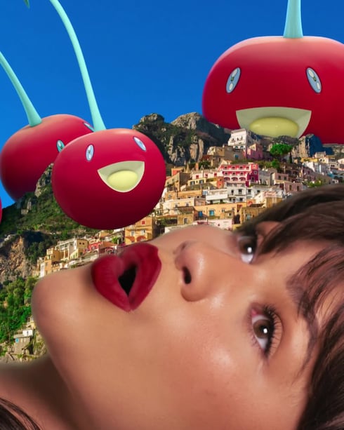 Die animierte Kampagne lädt in die fantasievolle Welt von Takashi Murakami ein und versprüht eine legere Ferienatmosphäre. Dabei werden charakteristische Taschen, Schuhe, Düfte und Accessoires präsentiert, die mit dem farbenfrohen Kirschmotiv des Künstlers verziert sind.