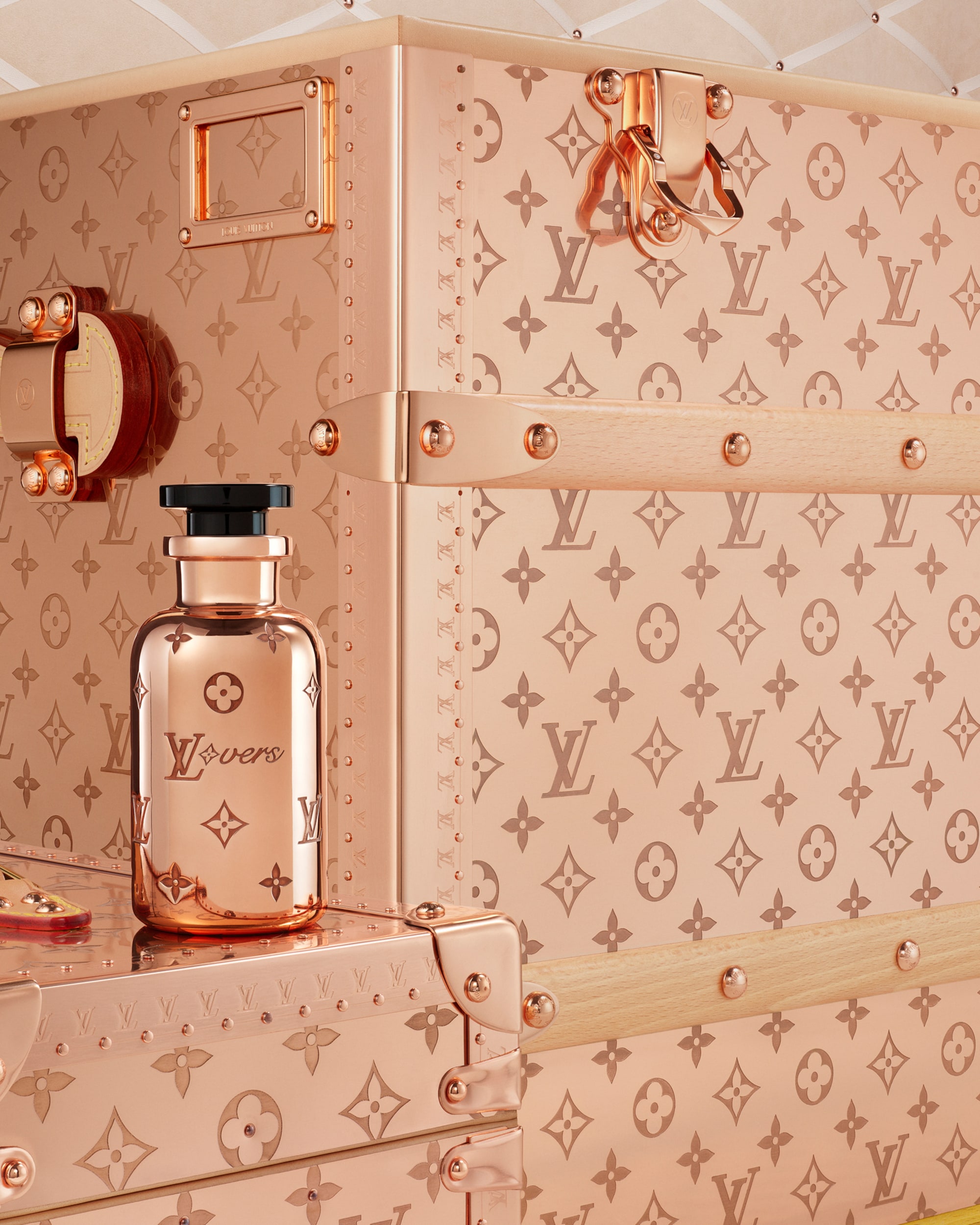 Inspiriert von den metallischen Koffern aus Pharrell Williams erster Kollektion von Louis Vuitton präsentiert sich der limitierte Kupferflakon mit dem leuchtenden, holzigen Duft in einer neuen, strahlenden Aura – ein außergewöhnliches Collectible für LV Lovers, das mit der Zeit eine markante Patina entwickelt.