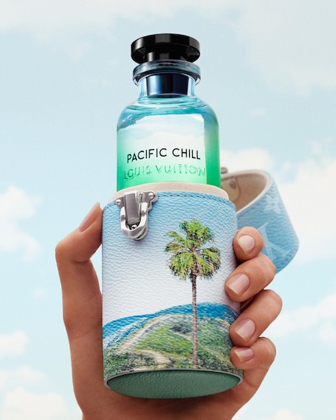 Für Pacific Chill greift der Künstler Alex Israel die gedämpften Farbtöne der verzaubernden kalifornischen Küste auf. Das neue Werk "Impression of the Morning Sun" hüllt das Reiseetui des Parfums in eine ruhige Farbpalette, die von einer regenerativen Kraft erfüllt ist.