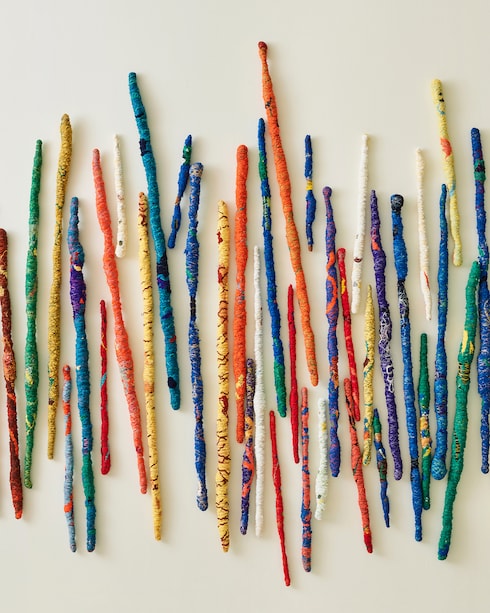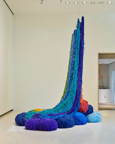 Die Künstlerin Sheila Hicks durchbricht die Grenzen zwischen bildender und angewandter Kunst und verbindet in ihren handgewebten Werken, weichen Skulpturen und monumentalen Installationen nahtlos Modernismus, Abstraktion, außerwestliche Traditionen und Savoir-faire. Mit Skulpturen und Umgebungen aus Wolle, Nylon, Seide, Leinen oder Baumwolle kreiert Hicks einladende Atmosphären, in denen die Besucher wandern, sich hinlegen und verweilen können. Entdecken Sie drei ikonische Werke der Künstlerin, "Atterrissage" (2014), “Bâtons de Parole” (2016) und "Another Break in the Wall" (2016), die zum ersten Mal in Korea präsentiert werden.