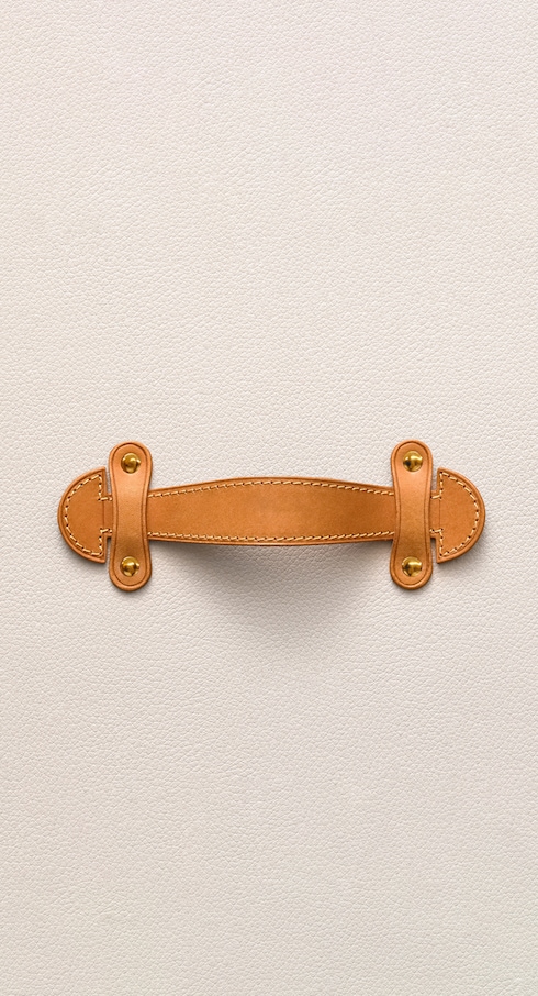 Louis entwickelt ein flaches Design, das mit Eisenbändern und Buchenholzlatten verstärkt ist, aber durch die Verwendung von Pappelholz dennoch leicht bleibt. Diese Innovation ist stapelbar, langlebig und stoß- und wasserfest und revolutioniert das Reisen. Um sein Design zusätzlich zu schützen, lässt er das ikonische Leder patentieren.