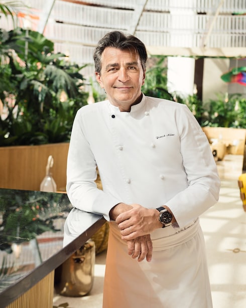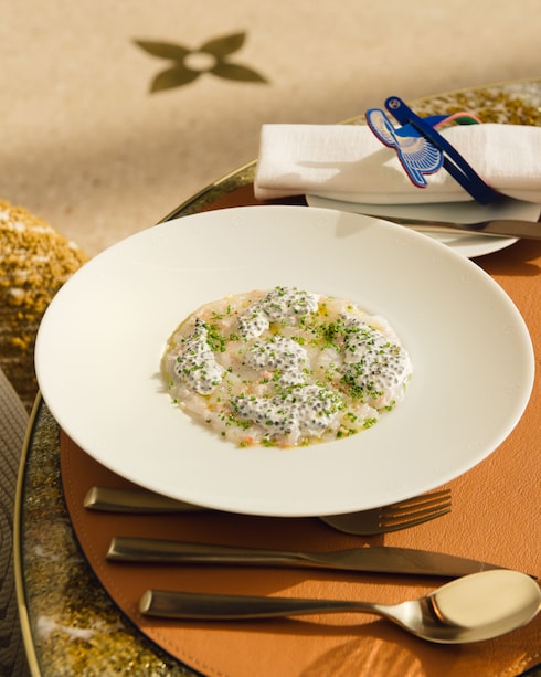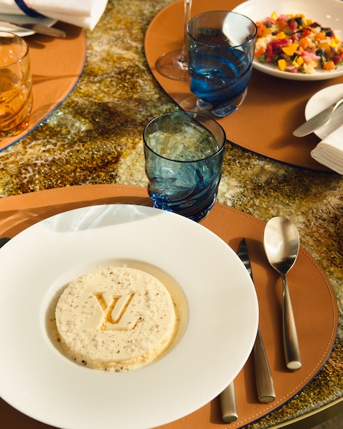 Dieses kulinarische Erlebnis von Louis Vuitton wurde in Zusammenarbeit mit Küchenchef Yannick Alléno realisiert, der zahlreiche Michelin-Sterne-Restaurants auf der ganzen Welt leitet, darunter das Alléno Paris im Pavillon Ledoyen und das Le 1947 im Cheval Blanc Courchevel, die beide mit drei Michelin-Sternen ausgezeichnet sind.