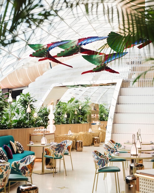 In dieser einzigartigen Kombination aus Lounge und Restaurant können sich Reisende in einem Raum entspannen, der im unverkennbaren Stil von Louis Vuitton gestaltet ist, und zu jeder Tageszeit die vielfältigen Menükreationen von Küchenchef Yannick Alléno genießen.