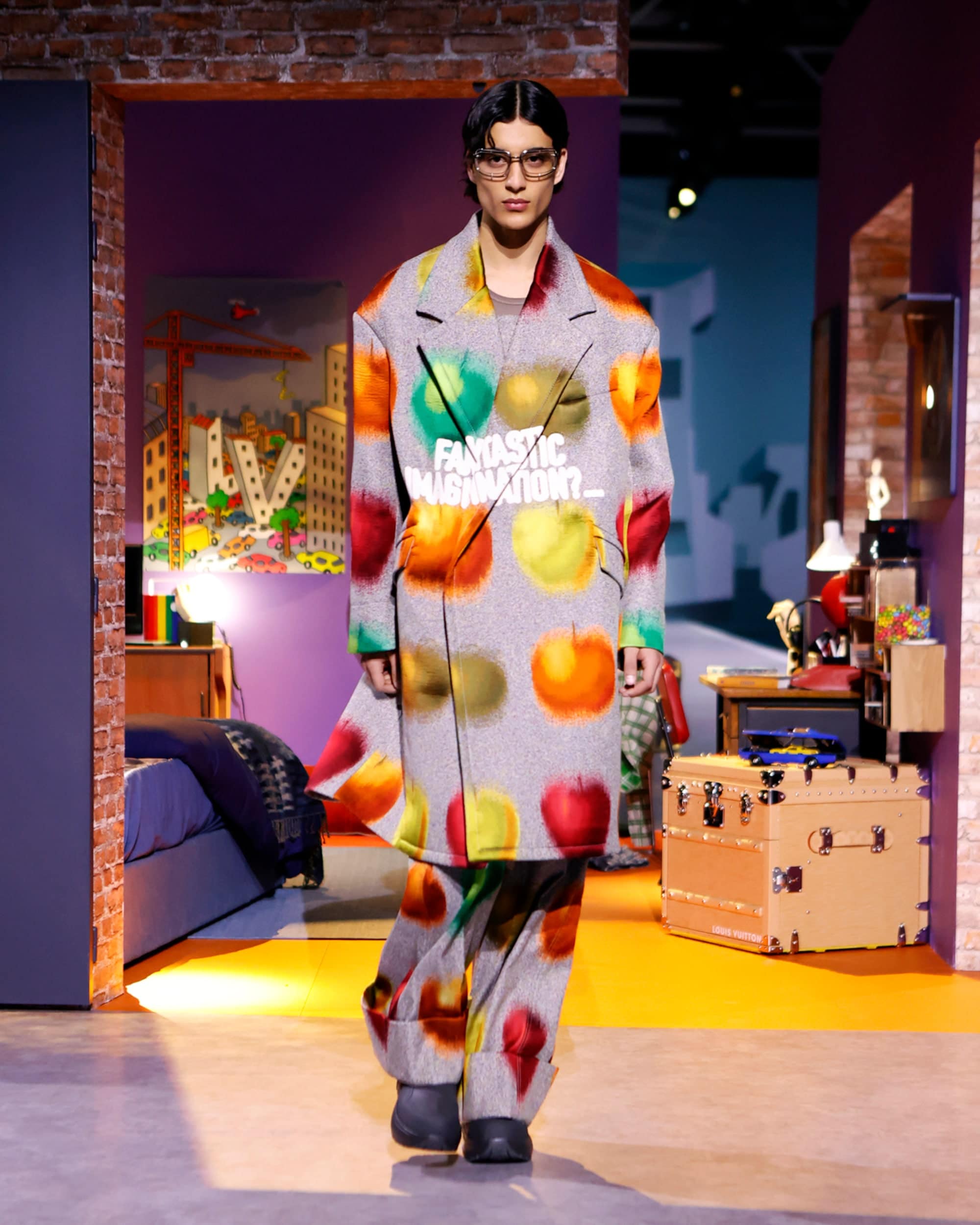 Louis Vuitton präsentiert die Herren Herbst Winter 2023 Kollektion, die sich auf die prägenden Momente der Erziehung und die Phasen des Übergangs von der Kindheit zum Erwachsensein bezieht.