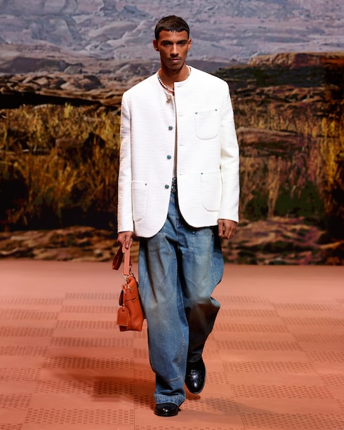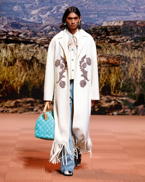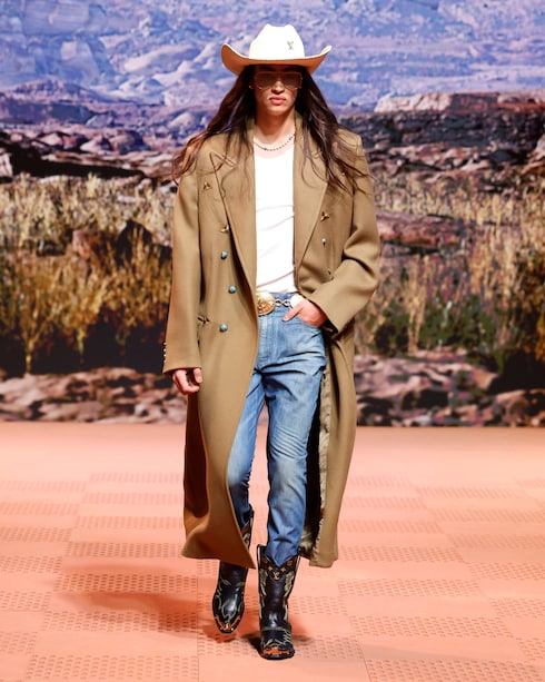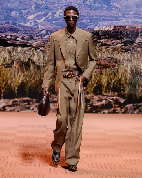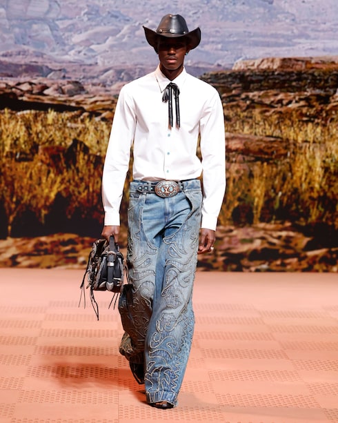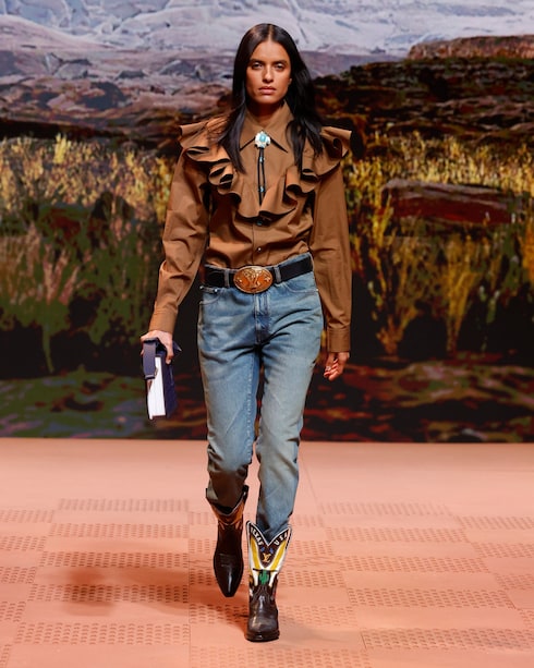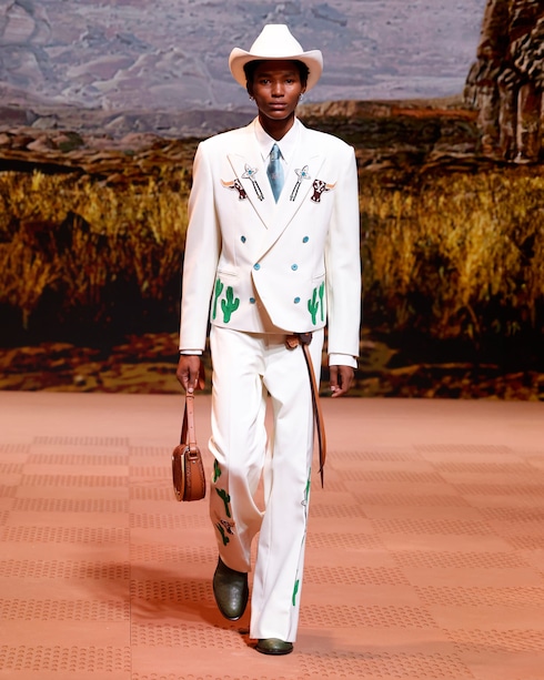 In Anlehnung an die Ästhetik der amerikanischen Western-Garderobe sind die von Cowboys inspirierten Silhouetten und Details der Arbeitskleidung mit den traditionellen Signaturen der Maison versehen. Die charakteristischen Taschen und Accessoires, die mit bedeutenden Verzierungen und raffinierten Materialien ausgestattet sind, bringen die nuancierten Stilcodes dieser besonderen Welt zum Ausdruck.