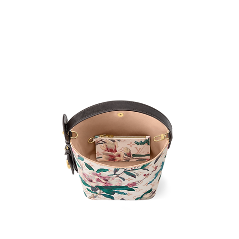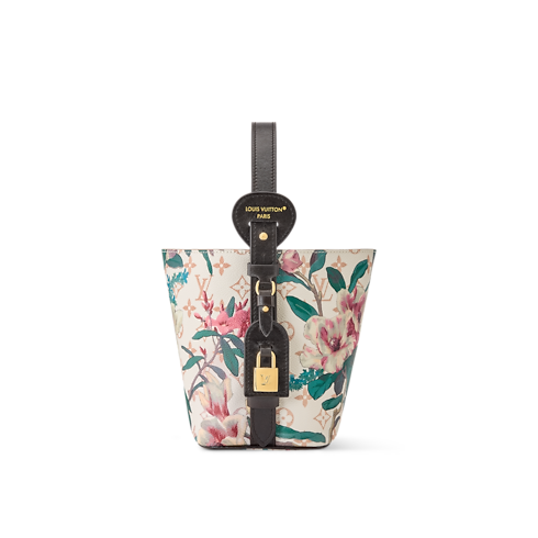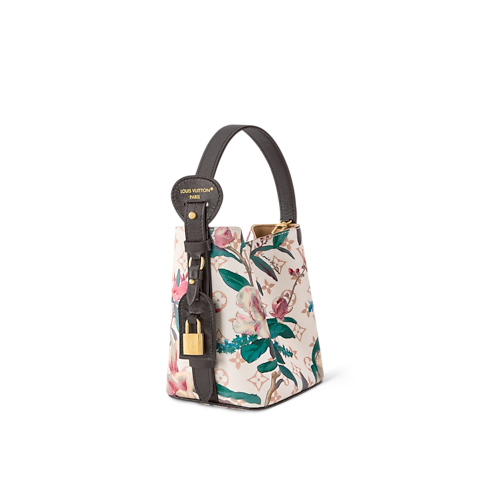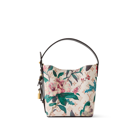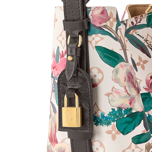 Im Rahmen der Monogram Eden Kollektion wird diese All In BB in Monogram Dune Canvas neu interpretiert, welches von einem leuchtenden, floralen Motiv geziert wird. Die klassische Silhouette in der Form einer Beuteltasche ist mit Besätzen aus Rindsleder versehen und wird durch ein goldfarbenes Hängeschloss sowie den charakteristischen LV Adressanhänger akzentuiert. Das Innere schließt ein herausnehmbares Reißverschlusstäschchen ein und bietet ausreichend Platz für ein Smartphone, eine Geldbörse und Schlüssel.