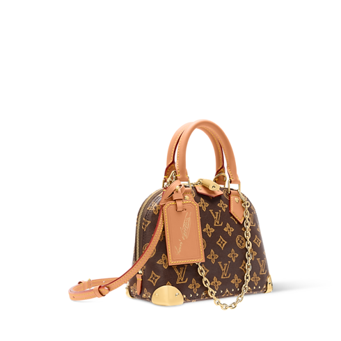 Inspiriert von einem Motiv aus den Archiven aus dem Jahr 1908, feiert diese Monogram Origine Alma Trunk BB die 130-Jahr-Feier des Louis Vuitton Monograms mit einer einzigartigen Neuinterpretation des ursprünglichen Motivs. Sie präsentiert sich in einer zeitlosen Farbpalette, die perfekt mit der goldfarbenen Kette, dem Hängeschloss und den Ecken aus Metall harmoniert. Das kompakte Design kann sowohl diagonal am Körper, über der Schulter als auch elegant in der Hand getragen werden.