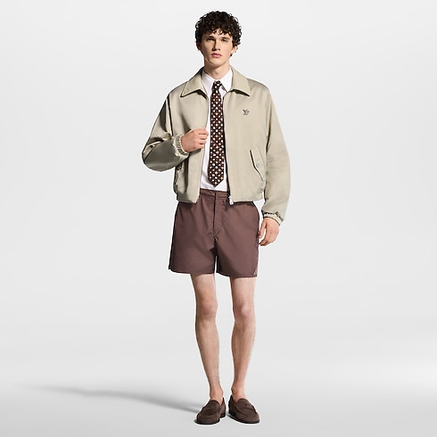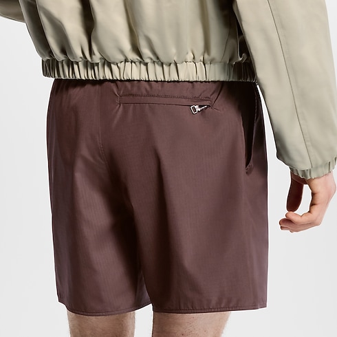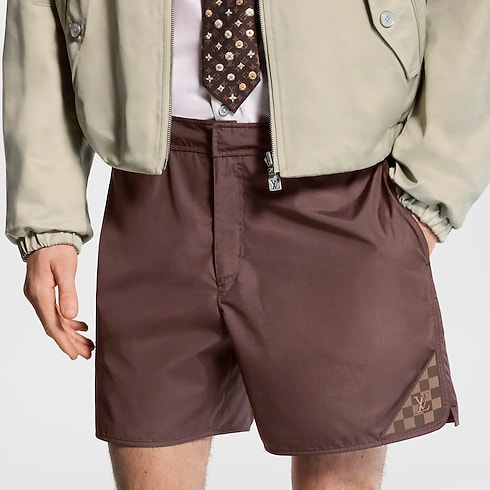 Diese dunkelbraunen Badeshorts aus technischem Ripstop-Gewebe sorgen für eine elegante Note am Pool. Die minimalistische Silhouette wird durch einen Damier Heritage Aufnäher aus Silikon mit 3D-LV-Schriftzug am linken Bein veredelt. Diese Shorts mit Eingrifftaschen und Reißverschluss lassen sich für Ensembles außerhalb des Wassers mit legeren und sportiven Modellen kombinieren.