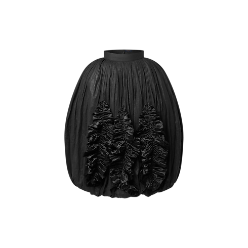Dieser avantgardistische Rock vom Laufsteg zeichnet sich durch einen extravaganten Stil aus. Das zeigt sich in der umhüllenden, mittellangen Ballon-Silhouette, die vorne und hinten mit Ton in Ton gehaltenen Volants für einen dramatischen Effekt versehen ist. Leicht beschichtetes Leinenmischgewebe-Toile sorgt für eine romantische, strukturierte Optik, während ein schlicht gehaltener Bund die Figur betont und zugleich ein elegantes Finish darstellt.
