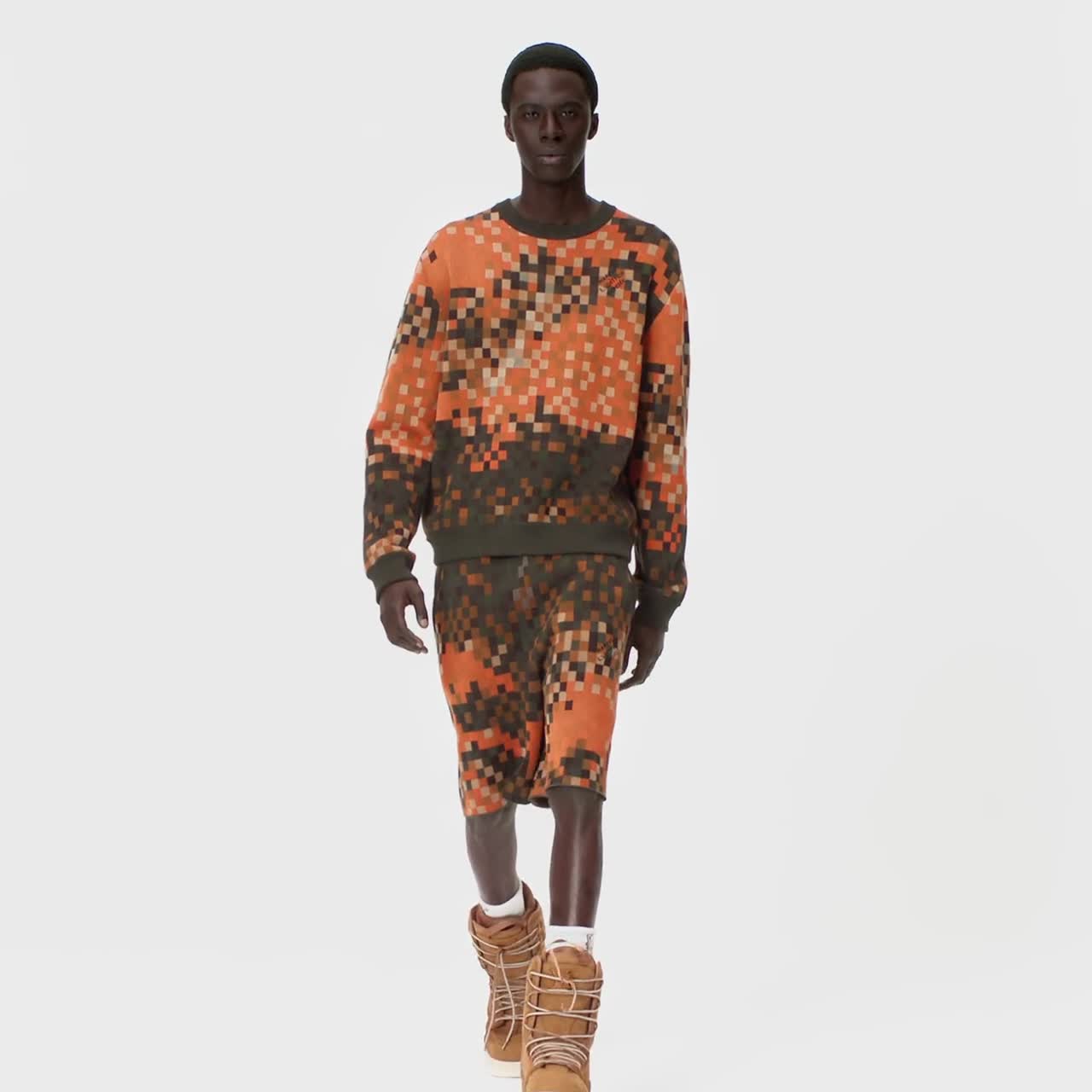 Dieser leichte Pullover aus Baumwolle präsentiert sich mit dem grafischen Damoflage-Motiv von der Herbst Winter 2024 Fashion Show. Der raffinierte Jacquard wird aus Garnen in acht verschiedenen Farben gewebt, indes verweisen eine „L. Vuitton Marque Déposée“ Signatur auf der Brust sowie ein nietenbesetzter LV Lovers Schriftzug auf der Rückseite auf das Haus Louis Vuitton. Ein vielseitiges Kleidungsstück für jede Saison, welches mit den dazu passenden Shorts zu einem legeren Set kombiniert werden kann.