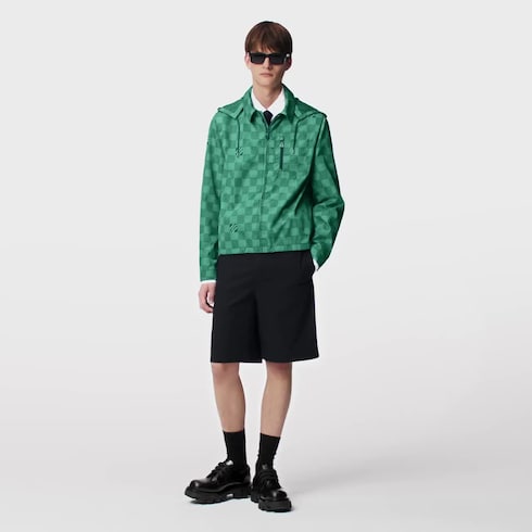 Für die von maritimen Themen inspirierte Kollektion vereint diese technische Windjacke mit Kapuze Funktion und Stil. Sie zeichnet sich durch ein durchgängiges Damier Monogram-Motiv aus, das sich mit Mikro-Monogram-Details in den abwechselnden Quadraten sowie mit vereinzelten „Marque L.Vuitton Déposée“ Signaturen präsentiert. Dieses grafische Modell verleiht legeren Looks eine modische Note.