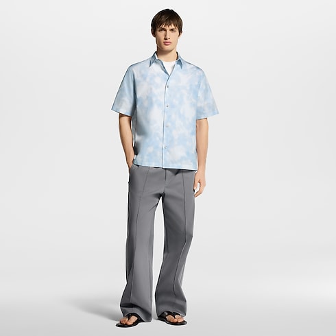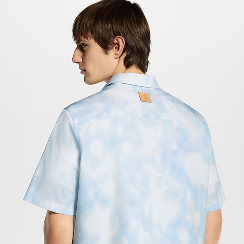 Dieses modische, luftige Hemd mit kurzen Ärmeln ist aus einem leichten Baumwollstoff gefertigt und mit einem gedruckten LV Flower X-Ray-Motiv in zarten Blau- und Weißtönen versehen. Das über einem Damier-Motiv gearbeitete grafische Blumen-Motiv integriert dezente LV- und Monogram-Blüten-Elemente. Dieses charakteristische Modell lässt sich unter einer kragenlosen Jacke mit demselben Motiv tragen.