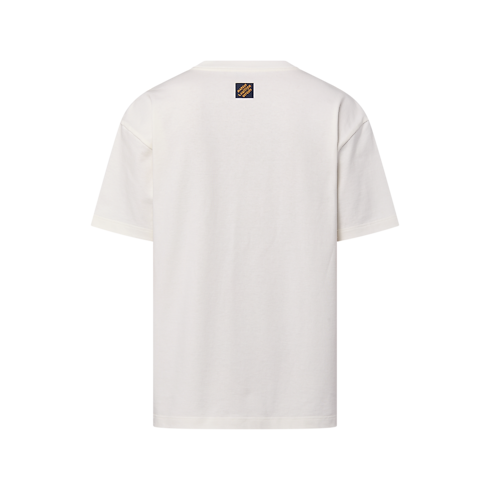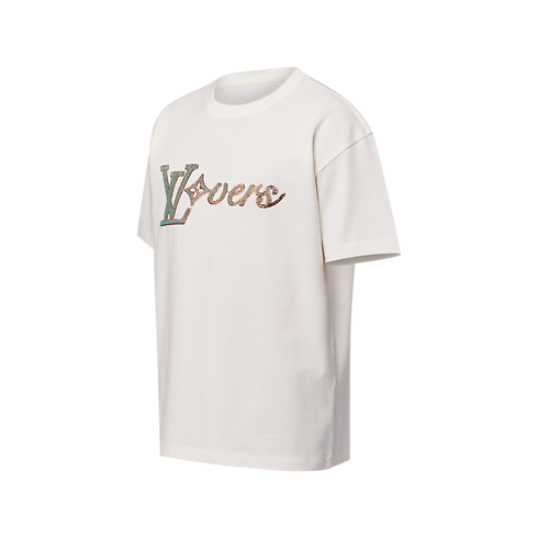Ein LV Vers-Motiv als Stickerei mit Perlen entlang der Brust verleiht der klassischen Silhouette dieses legeren weißen T-Shirts aus weicher Bio-Baumwolle eine elegante Note. Das Kleidungsstück ergänzt Looks für jeden Tag auf raffinierte Weise.