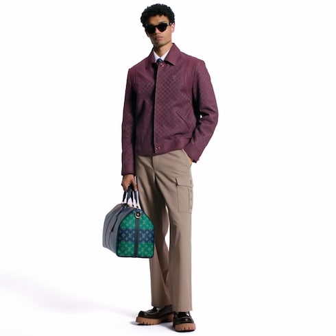 Dieser einzigartige Blouson aus Leder in intensiven, herbstlichen Burgunderrottönen ist durchgängig mit dem geprägten Mini Damier-Motiv samt Marque L. Vuitton Déposée Signaturen verziert. Ton in Ton gehaltene Einsätze an den Schultern nehmen den sportliven College-Look der aktuellen Kollektion auf. Zugleich schmückt eine emaillierte Verzierung aus Metall mit LV Signatur die Brust, während Jacquard-Monogram-Details die Rückseite des gerippten Taillenbunds akzentuieren.