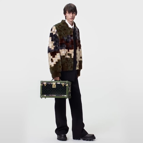 Dieser exklusive Blouson aus Pelz zeigt eine hochwertige Neuinterpretation des ikonischen Damoflage-Motivs von der Frühjahr Sommer 2024 Fashion Show: Der weiche, hochflorige Pelz wird detailgenau zugeschnitten und zu einem grafischen Pixel-Motiv in dezenten Camouflage-Nuancen samt einer LV-Signatur auf der Brust zusammengefügt. Abgerundet wird das Kleidungsstück durch ein Innenfutter aus Seide sowie ebenfalls mit Pelz ausgeführte elastische und gerippte Bündchen und Taillenabschlüsse.