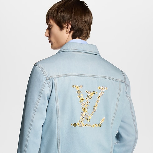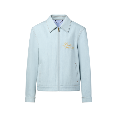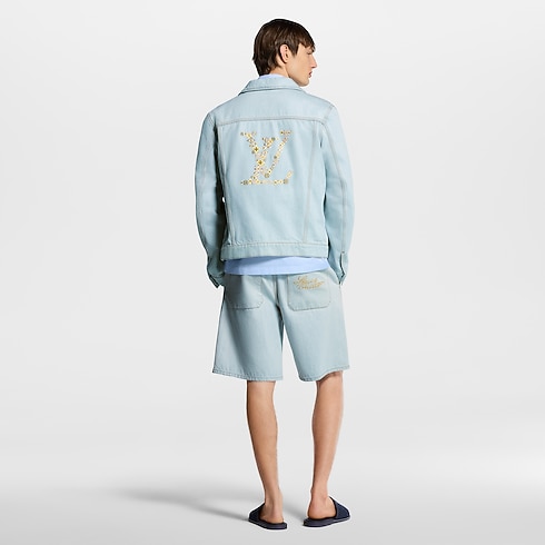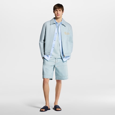 Dieser legere und elegante Blouson im Workwear-Stil ist aus hellem, verwaschenem Bio-Denim gefertigt. Eine goldfarbene, kursive Louis Vuitton Stickerei verleiht der linken Brustpartie einen zarten Akzent, während die romantische florale LV Blooming-Stickerei auf dem Rücken das Savoir Faire des Hauses Louis Vuitton widerspiegelt. Zu den Details zählen tabakfarbene Absteppnähte sowie ein charmantes Innenfutter mit Vichy-Karos. Zusammen mit passenden Shorts entsteht ein sommerliches Ensemble.