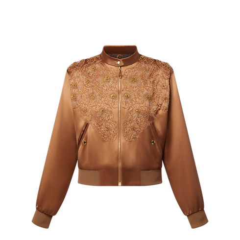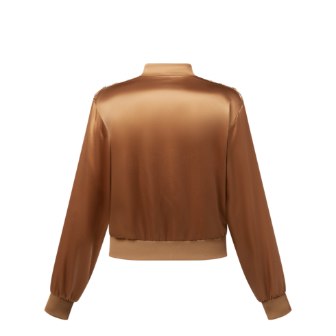 Unverkennbare Attribute der Saison interpretieren diese klassische Bomberjacke raffiniert neu. Das Modell in satinierter Doubleface-Seide mit schimmerndem Metallic-Finish präsentiert sich mit farblich abgestimmten, gerippten Säumen, welche den sportiven Charakter betonen. Auf der Brust sorgt ein aufwendig besticktes Blumen-Motiv für eine romantische Note, während ein Innenfutter aus Seide mit dem klassischen Monogram-Motiv den Look mit einer dezenten Signatur abrundet.