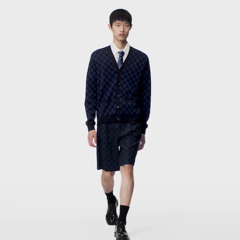 Dieser elegante Cardigan mit einer locker geschnittenen Passform setzt in formellen Looks einen modischen Akzent. Den feinen Wollstrick ziert ein in der Jacquard-Technik gewebtes Wavy Damier-Motiv. Die darin integrierten, dezenten LV Signaturen präsentieren eine zeitgemäße Interpretation der ikonischen Initialen. Der Entwurf lässt sich als wärmende Lage unter einem Jackett kombinieren oder kann als einzelnes Oberteil getragen werden. Er verleiht formellen Ensembles eine Preppy-Optik.