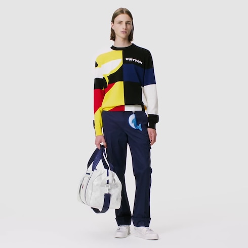 Diese zeitlose Cargo-Hose aus der Kollektion zum 37. Louis Vuitton America’s Cup zeichnet sich durch ein dezentes Damier-Motiv an den seitlichen Taschen sowie an den Aufschlägen aus. „Marque L. Vuitton Déposée“ Signaturen zieren das Damier-Motiv sowie die bestickten Schlaufen an den Taschen. Ein aufgestickter, dreifarbiger „Gaston“ Schriftzug auf der Gesäßtasche verleiht diesem unverzichtbaren Basic für sommerliche Tage eine sportive Note.