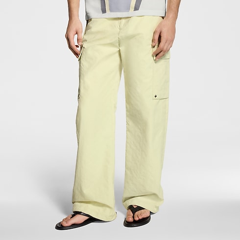 Diese Cargo-Hose in zartgelbem Vanilla ist die perfekte Wahl für das Frühjahr. Sie ist aus einem leichten, technischen Baumwoll-Ripstop gefertigt, der durch ein subtil strukturiertes Monogram-Jacquard-Motiv veredelt wird. Weitere charakteristische Details sind Nieten in Form der Monogram-Blüte an den aufgesetzten Taschen sowie eine gewebte Signatur auf der Rückseite des elastischen Bundes. Ein passender Parka rundet den leuchtenden Look stilvoll ab.