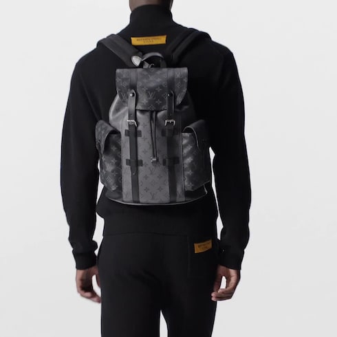 Diese auffallende Version des Christopher PM Rucksacks präsentiert sich in Monogram Eclipse Reverse Canvas mit einem Besatz aus schwarzem Leder. Zwei Seitenfächer ermöglichen schnellen Zugriff auf alles Wesentliche, während der Überschlag aus Leder samt Druckknopf gewährleistet, dass alles sicher verstaut ist. Der Entwurf ist vom Design stabiler Wanderrucksäcke inspiriert und zeichnet sich durch sein kompakteres Format aus.
