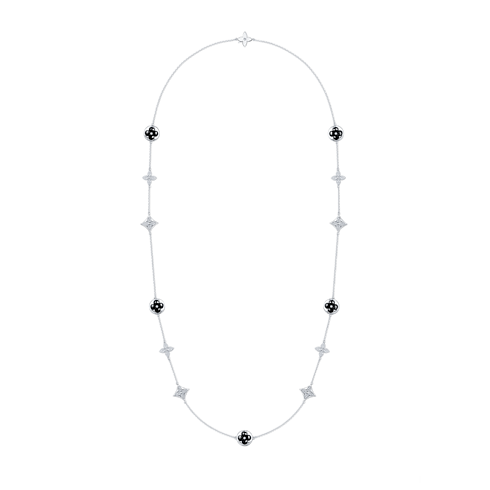Color Blossom lange Halskette, Weißgold, Onyx und Diamanten