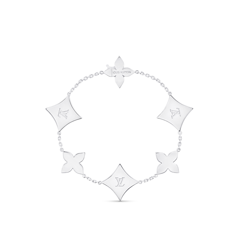 Das Color Blossom Multi Star Armband ist aufwendig aus 18-karätigem Weißgold gearbeitet und mit Monogram-Blüten geschmückt. Akzentuiert werden die detailgenau geschliffenen und von Hand polierten Motive aus Onyx durch Diamanten im Brillantschliff. Dieses zarte und dennoch eindrucksvolle, verstellbare Schmuckstück kann auf drei Längen getragen werden — für sich allein oder im modischen, mehrreihigen Look mit anderen Modellen aus der Kollektion.