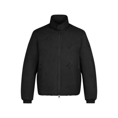 Diese wendbare Daunenjacke aus leichtem, technischem Gewebe bietet die Wahl zwischen einem einfarbigen Look und einer Variante mit durchgängigem Monogram-Motiv. Die einfarbige Seite präsentiert sich mit wellenförmigen Nähten, aufgesetzten Taschen und einem Ton in Ton gehaltenen Karabinerhaken samt LVSE-Anhänger. Ein geprägtes Monogram-Motiv schmückt die Wendeseite.