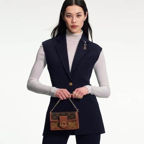 Die in einer Kombination von Monogram Canvas und Monogram Reverse Canvas gefertigte Dauphine Chain Geldbörse greift alle Signaturen der ikonischen Dauphine Kollektion auf: das Vintage-Design, den Besatz aus Kalbsleder und den LV Circle Verschluss. Dieses ebenso elegante wie geräumige Accessoire lässt sich dank der abnehmbaren goldfarbenen Kette auf verschiedene Arten tragen.