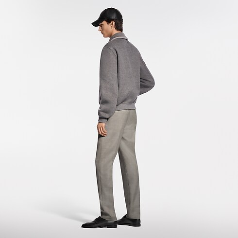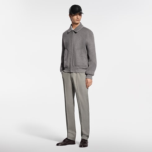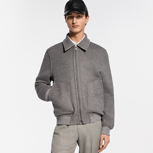 Dieser elegante, wendbare Blouson in Taupe besticht durch eine sanft abgerundete Silhouette. Sein Doubleface-Gewebe ist aus Wolle, Kaschmir und Seide gefertigt. Die einfarbige Seite ist auf der Brust mit einer Signatur aus Kristall-Strass akzentuiert und auf den Taschen mit Monogram-Blüten bestickt. Ein raffiniertes Jacquardgewebe mit dem Mini Flower Damier-Motiv verleiht der Wendeseite eine grafische Note. Dieses vielseitige Modell verleiht einem modischen, formellen Look ein zeitgemäßes Flair.