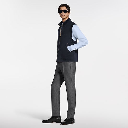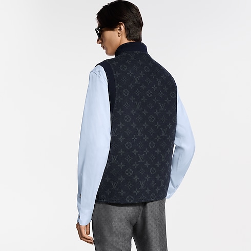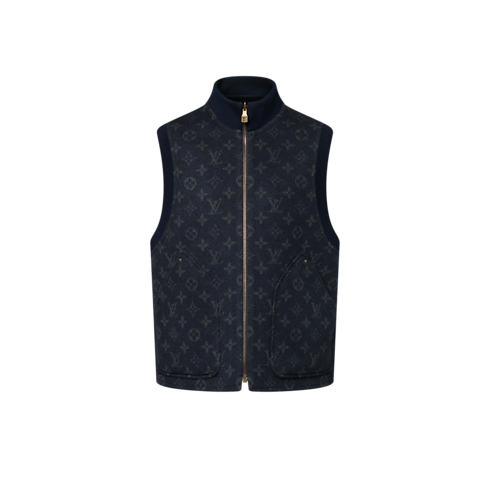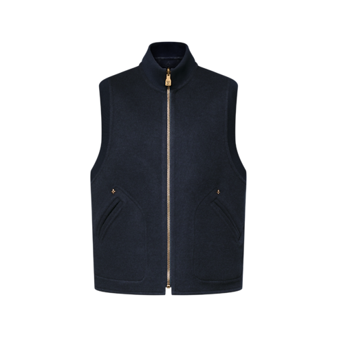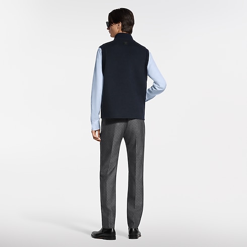 Diese wendbare Weste in Navyblau ist die ideale Wahl für die Übergangszeit und lässt sich stilvoll über einem Hemd oder Pullover oder unter einem Jackett tragen. Das Doubleface-Gewebe ist aus einem warmen, exklusiven Woll-Kaschmir-Seidengemisch gefertigt. Die zeitlose, einfarbige Seite ist mit dezenten Strasssteinen auf der Brust als Signatur besetzt. LV Flower Nieten zieren die Taschen. Ein Patch aus Leder akzentuiert die Rückseite. Die Wendeseite zeichnet sich durch ein Ton in Ton gehaltenes Jacquardgewebe mit dem Monogram-Motiv aus, das dem Design eine grafische Note verleiht.