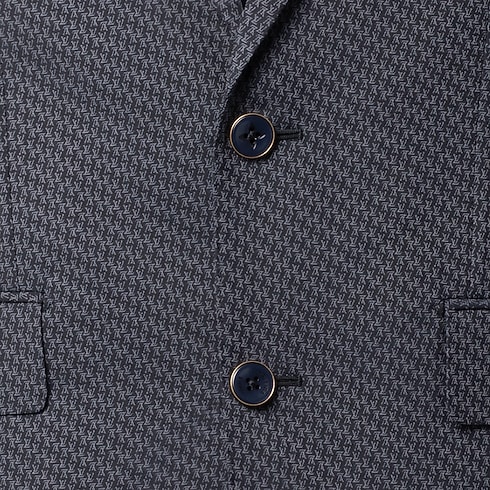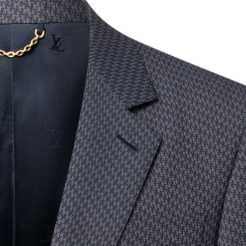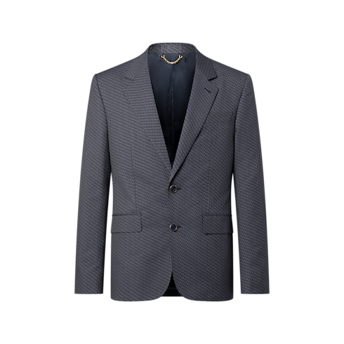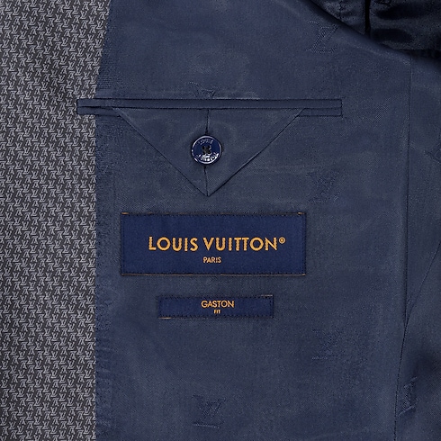 Dieses einreihige Jackett ist dank einer geradlinigen Gaston Passform die perfekte Wahl für einen stilvollen und zugleich angenehmen Business-Look. Sein navyblaues Gewebe ist mit einem grafischen LV Interlocked Jacquard-Motiv versehen. Das exklusive Gemisch aus Wolle, Baumwolle und Seide garantiert Tragekomfort und Atmungsaktivität für die wärmeren Monate. Eine passende Hose vervollständigt den eleganten Anzug.