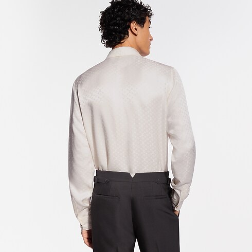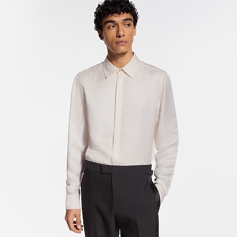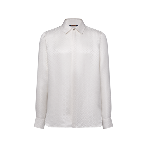 Dieses weiße Hemd aus Seide ist eine raffinierte Wahl für den Abend. Es ist mit einem Mini Monogram-Motiv als Jacquardgewebe verziert, dessen Ton in Ton gehaltenes Spiel aus matten und glatten Strukturen das fließende Gewebe und den natürlichen Glanz besonders hervorhebt. Dieses vielseitige Modell lässt sich sowohl mit Ensembles für den Abend kombinieren wie auch als elegantes Einzelstück tragen.