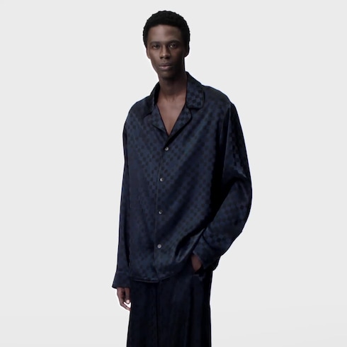 Dieses fließende Hemd ist dank seiner legeren Pyjama-Silhouette ein mühelos eleganter Begleiter für abendliche Anlässe. Das Modell ist aus strukturiertem Seiden-Jacquardgemisch gefertigt und präsentiert sich mit einem wellenförmigen Damier-Motiv und dezenten Monogram-Details - eine modische Neuinterpretation der traditionellen Signatur des Hauses Louis Vuitton. Im Set mit der passenden Hose mit Zugband ergibt sich ein stilvoller Look.