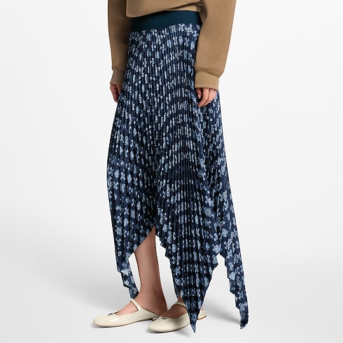 Diesen Rock aus einem leichten, luftigen Seiden-Twill zieren Falten und ein Zipfelsaum, die eine grafische und zugleich fließend fallende Silhouette kreieren. Ein übergroßer, figurbetonter, elastischer Bund bildet einen eleganten Kontrast. Das Modell ist durchgängig mit dem vom Art Nouveau inspirierten Monogram-Motiv dieser Saison bedruckt - eine Hommage an das Erbe des Hauses Louis Vuitton.