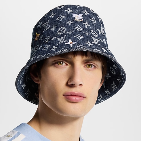Fischerhut aus Denim mit Monogram-Blüten