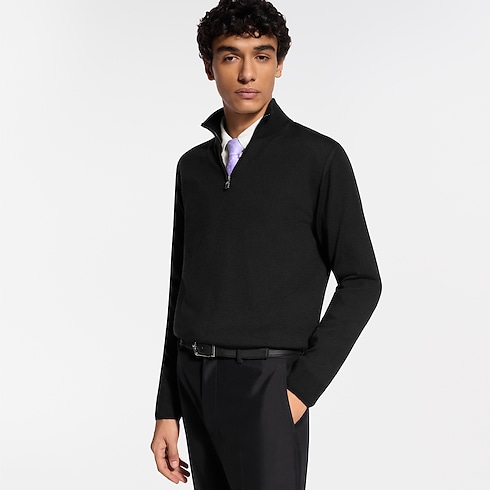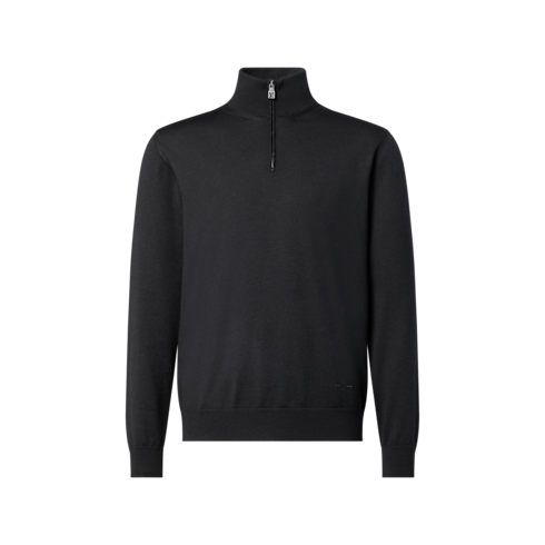 Dieser stilvolle schwarze Pullover mit kurzem Reißverschluss ist aus einem exklusiven Woll-Seiden-Kaschmirgemisch gefertigt und bietet eine weiche Haptik für optimalen Komfort. Der feine, sommerliche Strick zeichnet sich durch eine Signatur-Stickerei links am Saum sowie einen Patch aus Leder an der Rückseite aus. Das zeitlose Modell lässt sich offen über einem Hemd tragen oder geschlossen als Rollkragenpullover.