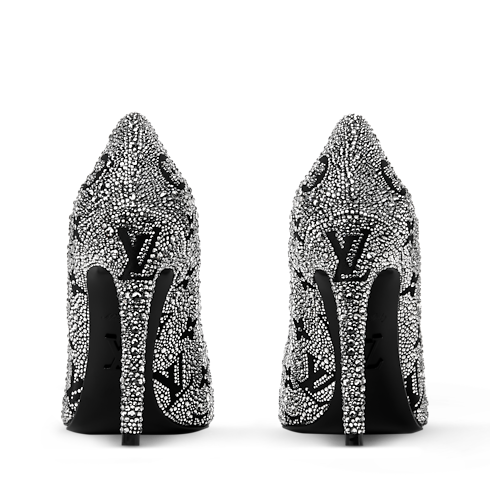 Der Gala Pumps ist aus Satin gefertigt, der mit glamourösen Strasssteinen besetzt ist, die das Louis Vuitton Monogram-Motiv zeigen. Dieses zeitlos elegante Modell zeichnet sich durch seine nach vorne spitz zulaufende Zehenkappe und den hohen Stiletto-Absatz aus, der ebenfalls mit Strasssteinen bedeckt ist. Der Pumps passt zu einer Version der ikonischen Capucines-Tasche.