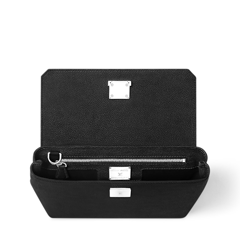 Die Georges Pouch ist aus Cuir Millesime Kalbsleder gearbeitet, einem exklusiven, dezent genarbten und von Natur aus geschmeidigen Leder aus der Domaine des Massifs Rinderaufzucht. Dieses Etui verfügt über ein S-Schloss sowie eine abnehmbare Schlaufe für das Handgelenk. In dem mit Lammleder gefütterten Inneren ermöglicht ein Reißverschlussfach die sichere und übersichtliche Verwahrung kleiner Gegenstände. Abgerundet wird das Design durch ein silberfarbenes LV Emblem auf der Innenseite.
